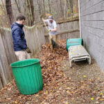 Leaves need to be picked up, brush needs to be removed, and bushes need to be pruned.